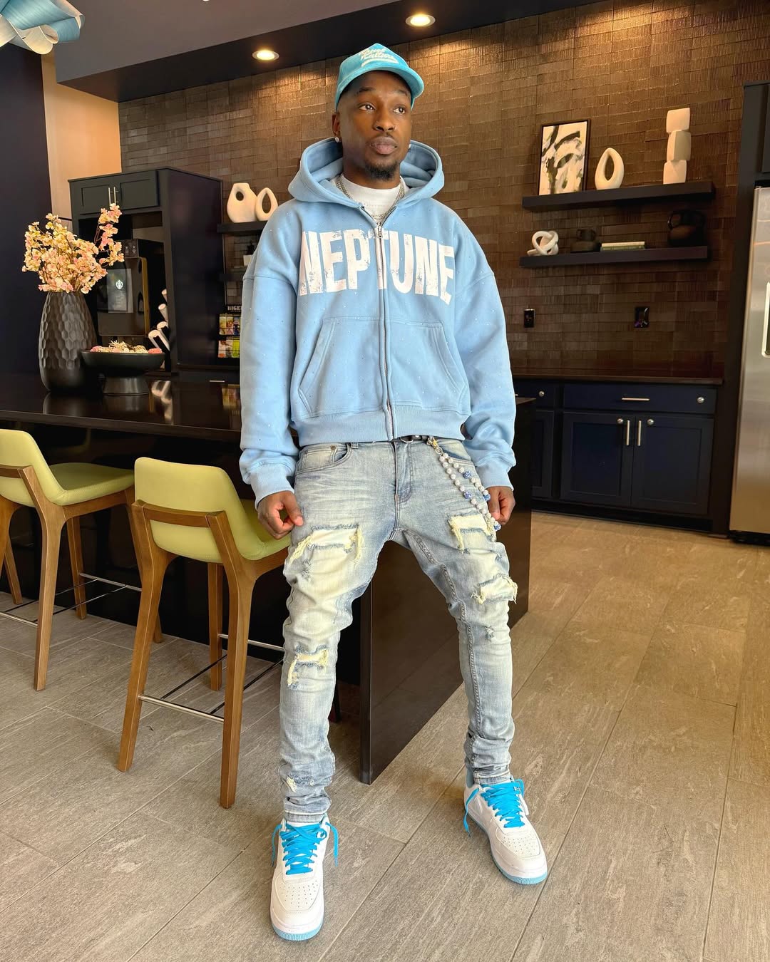 Neptune Light Blue 2.0 (Light Blue) zip up hoodies with rhinestones. Oversized and very slightly cropped. Fit true to size. Chains and accessories sold separately.