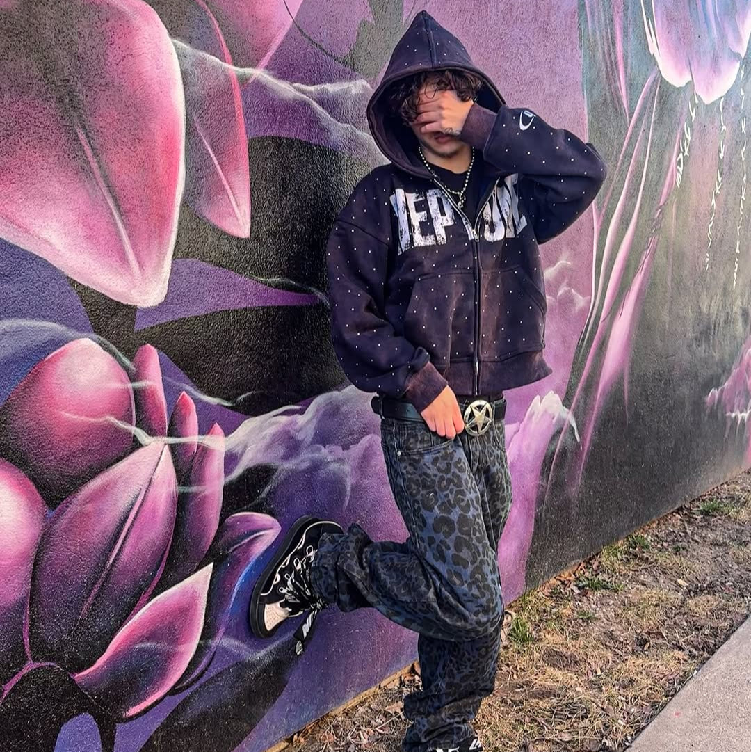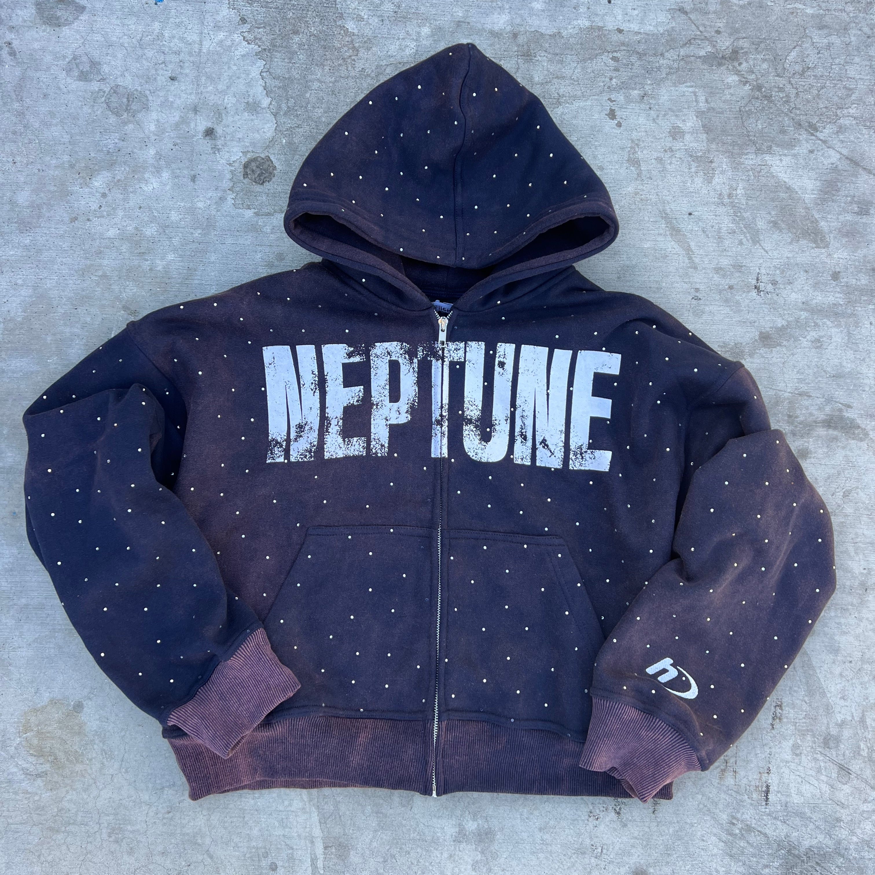 Blue with hints of purple zip up hoodies with rhinestones. Oversized and very slightly cropped. Fit true to size. Chains and accessories sold separately.